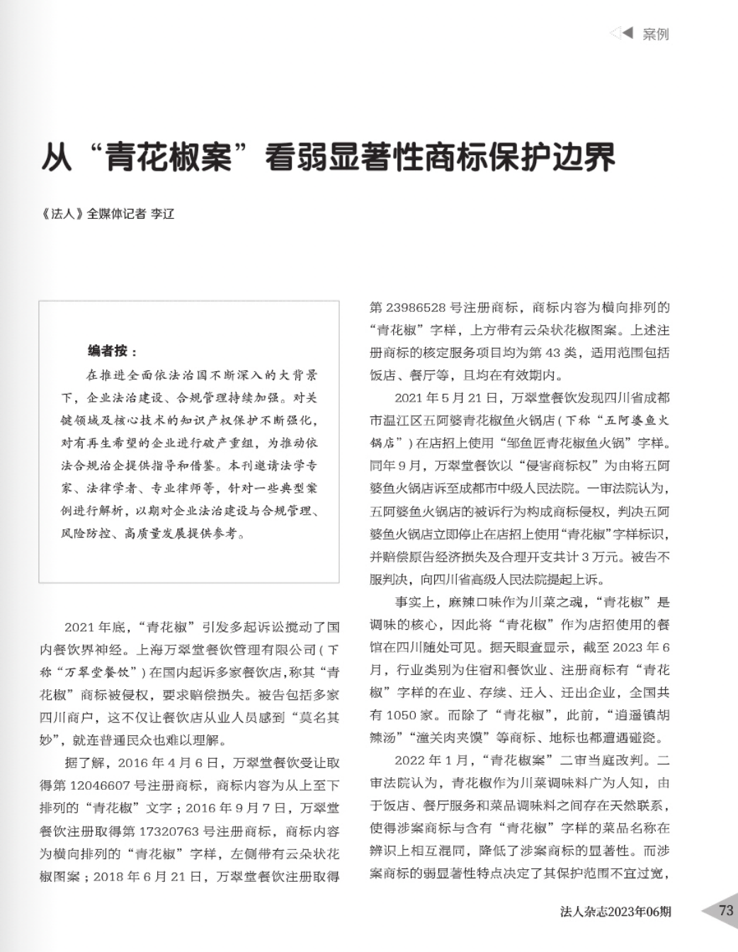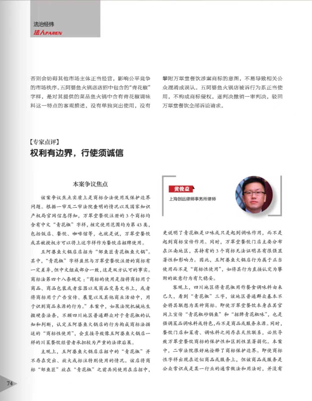 驻马店辉知简讯 | 辉知队黄俊益律师应“法治日报”旗下杂志邀请,就“青花椒”案发表专家点评